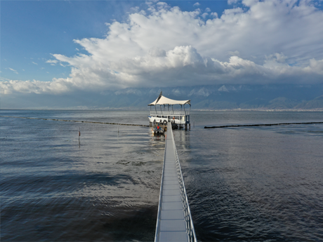 采用高效可調(diào)式渦井取藻、藍(lán)藻囊團(tuán)破壁、一體化二級強(qiáng)化氣浮等核心技術(shù),岸上站點藻水分離系統(tǒng)集成了藍(lán)藻打撈、脫氣沉降、氣浮分離、脫水等多個環(huán)節(jié)的技術(shù)和設(shè)備,形成了可規(guī)?;凸S化處理藍(lán)藻的基站。適用于藍(lán)藻水華長期規(guī)律性、大范圍聚集區(qū)域的常態(tài)化應(yīng)急處置。